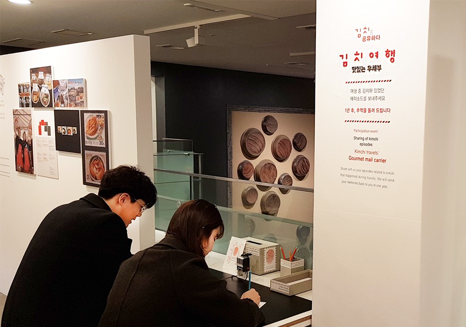 마지막 테마인 ‘김치를 공유하다’에서는 김치 관련 에피소드를 엽서에 적어 비치된 미니우체통에 넣으면, 전시가 끝나고 1년 뒤 본인이 적은 내용을 개인 휴대폰 또는 이메일로 발송해준다. 뮤지엄김치간도 즐기고, 1년 뒤에 돌아올 추억도 정성스럽게 적어보면 이색 데이트 코스 완성이다.