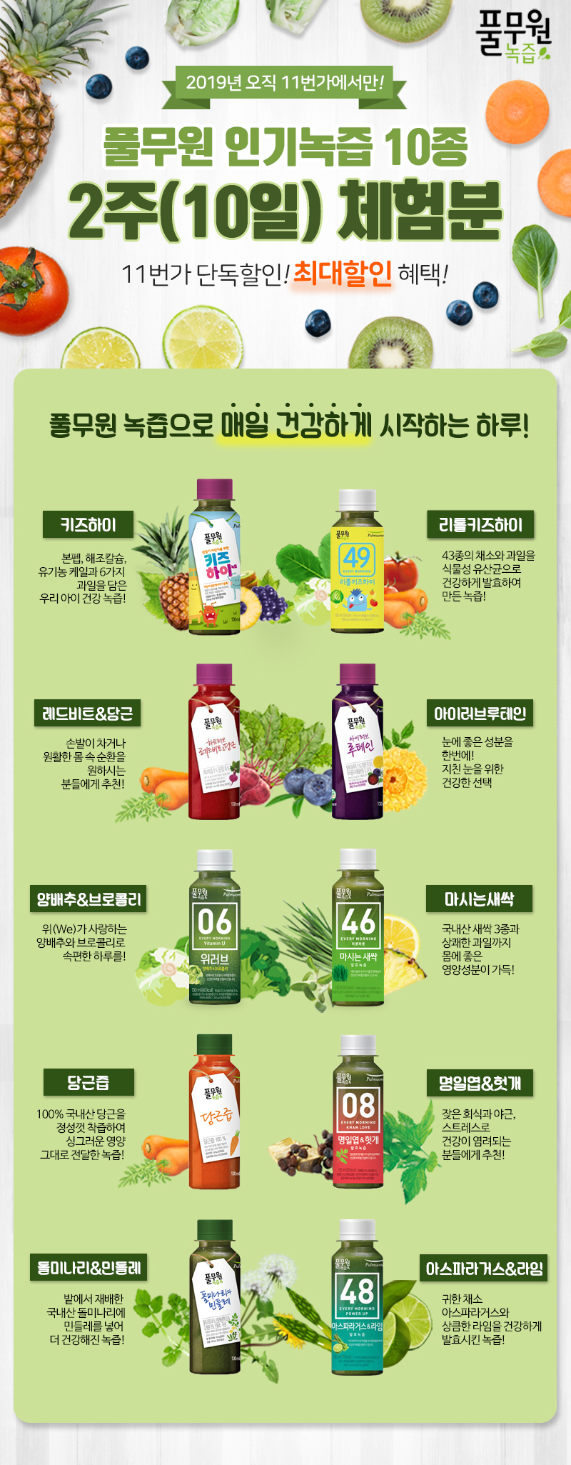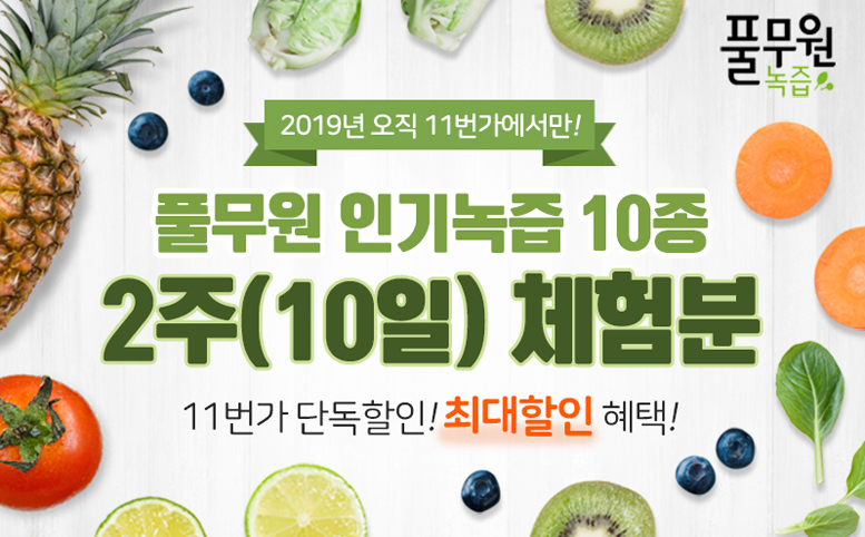 건강고민별 인기 녹즙 8종과 어린이용 건강 녹즙 2종 2주 배달권 20% 할인 혜택