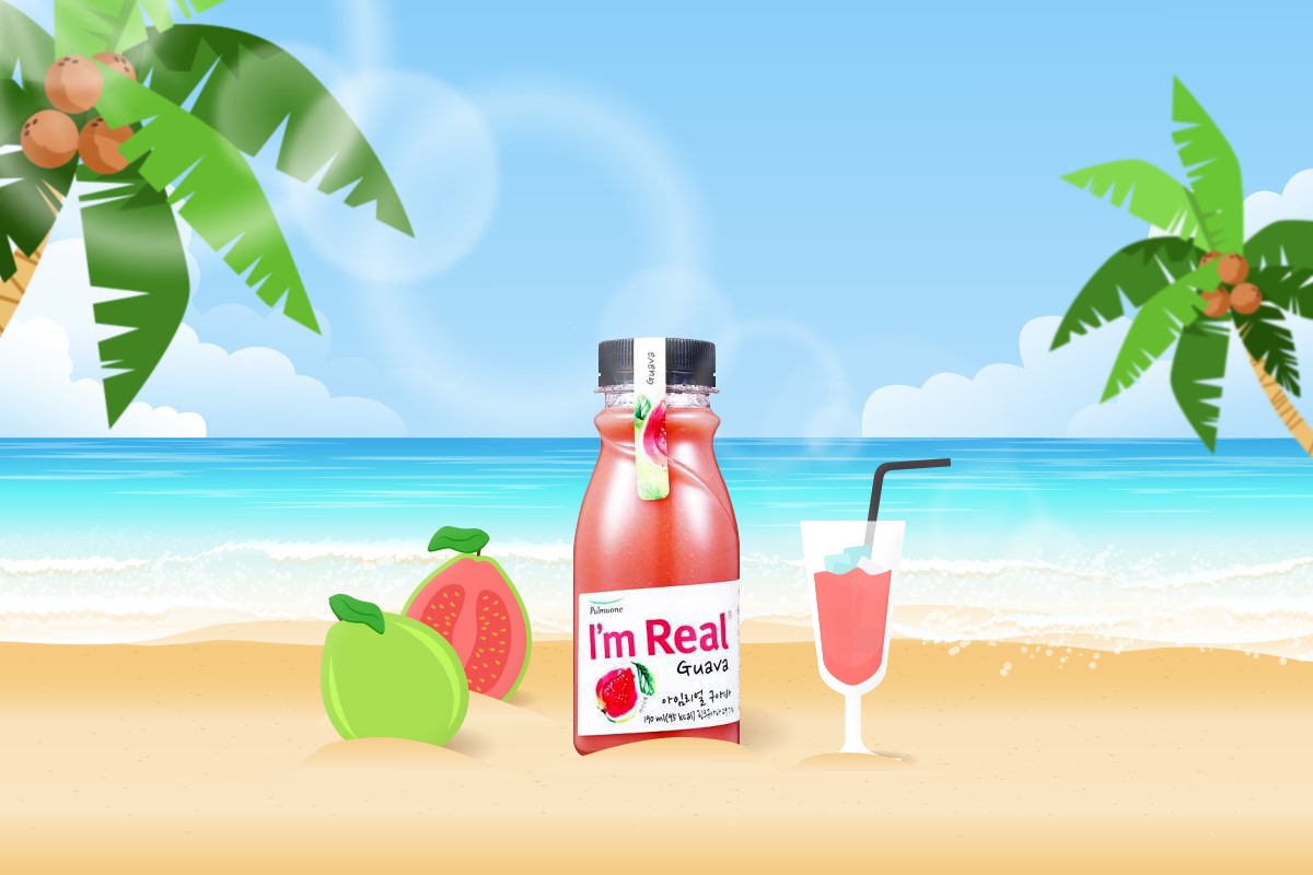 풀무원 아임리얼 구아바는 활력을 충전해주고 더운 날씨로 인한 열감을 낮추는데 도움을 주는 칼륨이 풍부한 구아바를 넣어 만든 프리미엄 생과일주스다. 말랑하고 달콤한 구아바는 생열매 형태로도 인기가 높지만, 과즙 음료 형태로 섭취하면 맛도 좋고 간편하게 음용할 수 있어 일석이조의 즐거움을 누릴 수 있다.