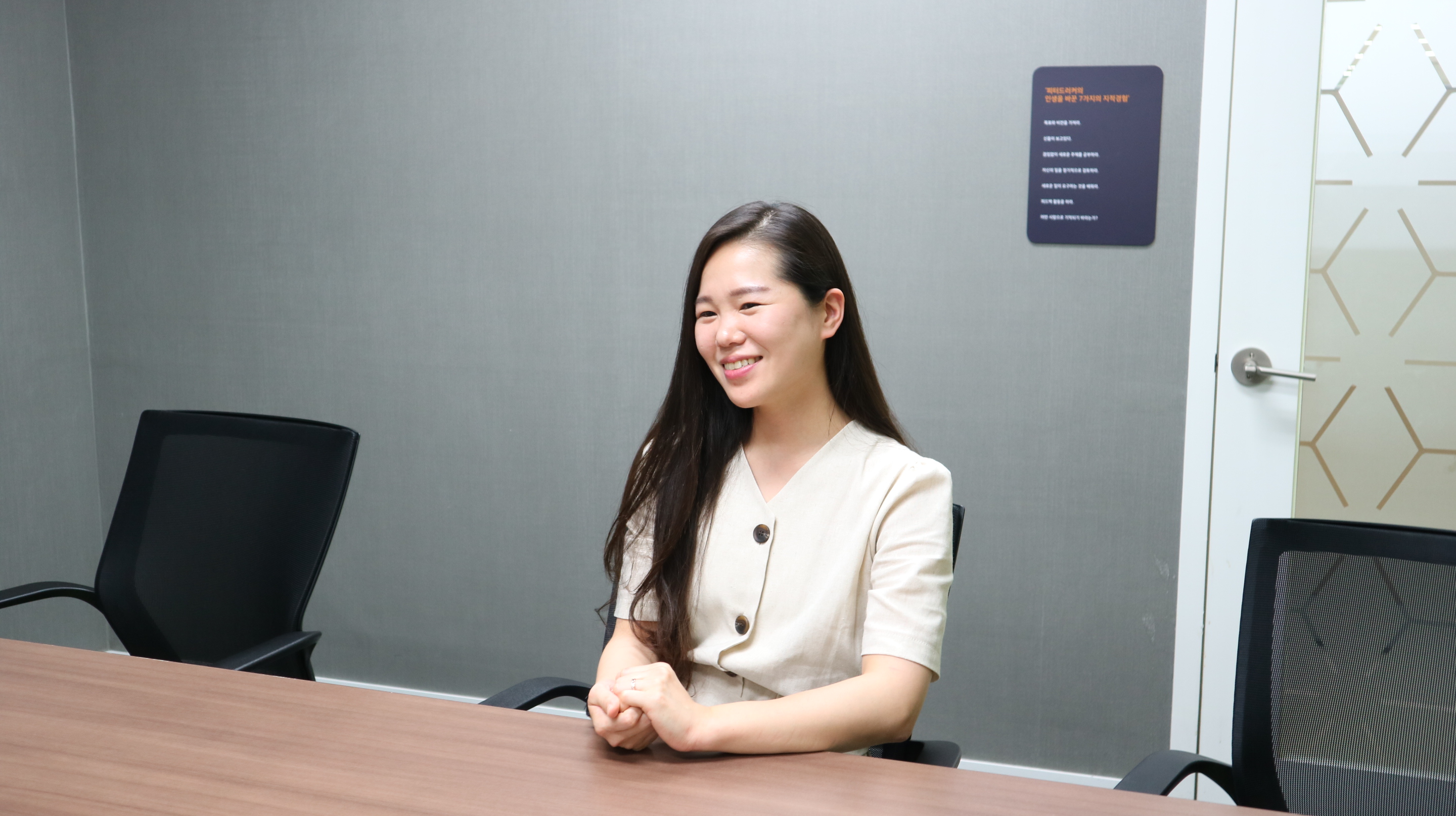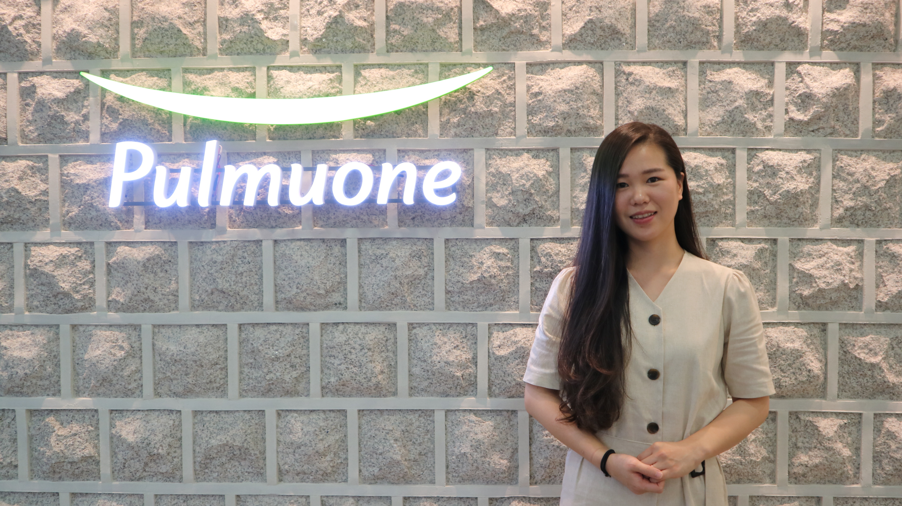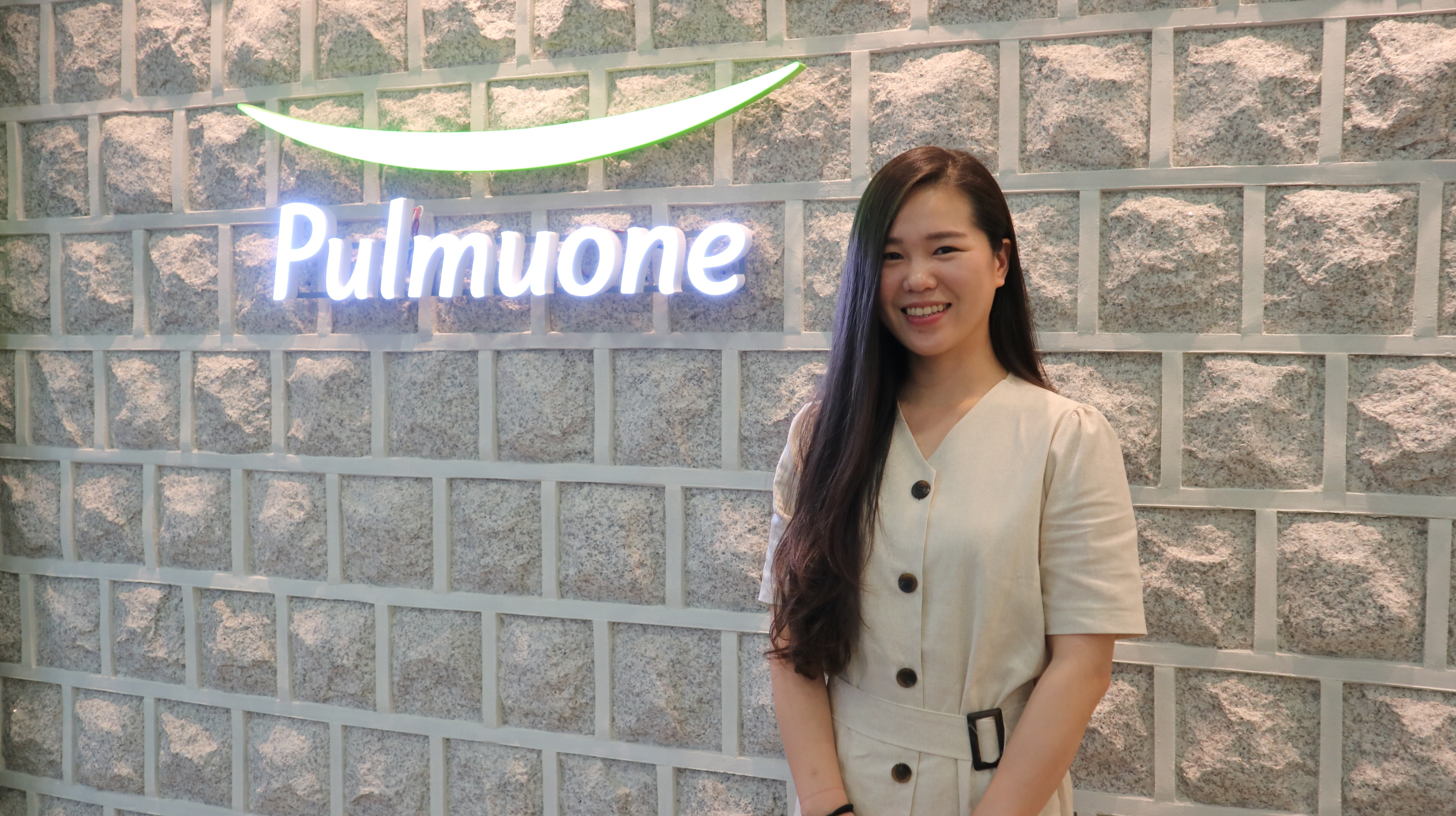 ▲ 풀무원 수서 본사 2층에서 밝게 웃으며 포즈를 취하고 있는 김지윤 매니저