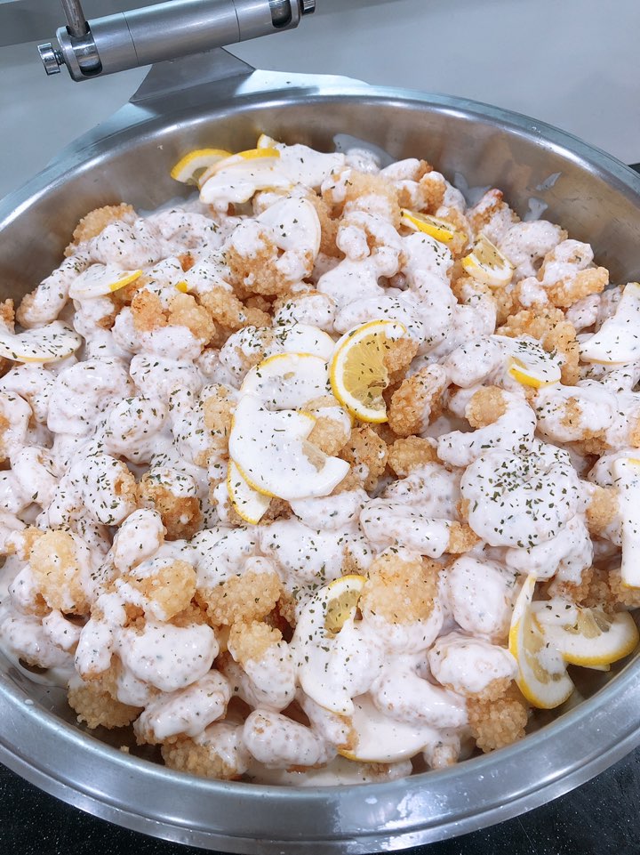 완제품 중에는 ‘허브딜 훈제연어스테이크’, ‘리얼직화그릴함박’, ‘우리쌀바삭 깐쇼새우’ 등을 자주사용했고, 소스류도 다양하게 쓰고 있어요. 또, 선수들이 만두를 매우 좋아하거든요. 만두 제품 중에는 ‘생가득 납작지짐만두’, ‘쫀득이복만두’가 인기가 많아요. 그 외에도, ‘찬마루 사골우거지국’ 같은 국류 제품이나, ‘치즈랑소시지랑 더블도그’, ‘대만식지파이’ 같은 간식류 제품들도 자주 내고 있어요.