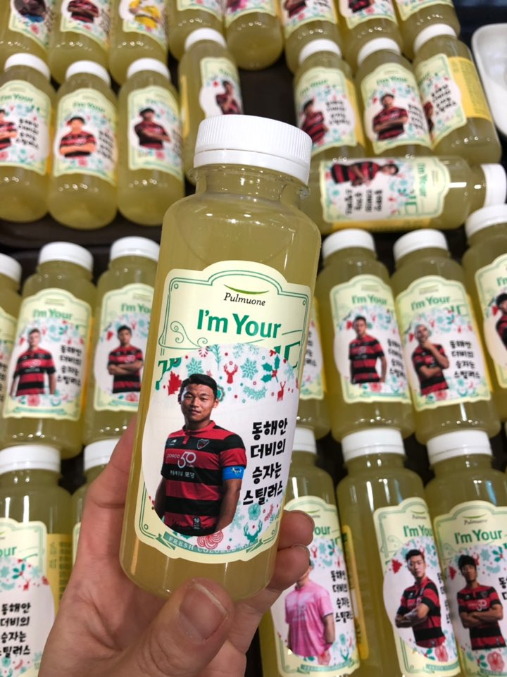 ▲ 선수들의 선전을 기원하는 스티커가 붙은 아임리얼 및 아임유어 제품사진