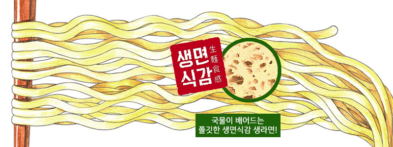 ‘생면식감’은 기존 풀무원의 라면 브랜드 ‘자연은 맛있다’를 리뉴얼한 브랜드다. 생면식감 제품들은 이름 그대로 면을 튀기는 대신 바람에 말려 생면의 면발을 닮은 부드러우면서도 쫄깃한 맛을 자랑한다. 튀기지 않아 포화지방과 칼로리가 비교적 낮고, 건조 중 자연스레 생긴 구멍으로 국물이 면에 잘 배어들어 풍부한 맛을 즐길 수 있다.