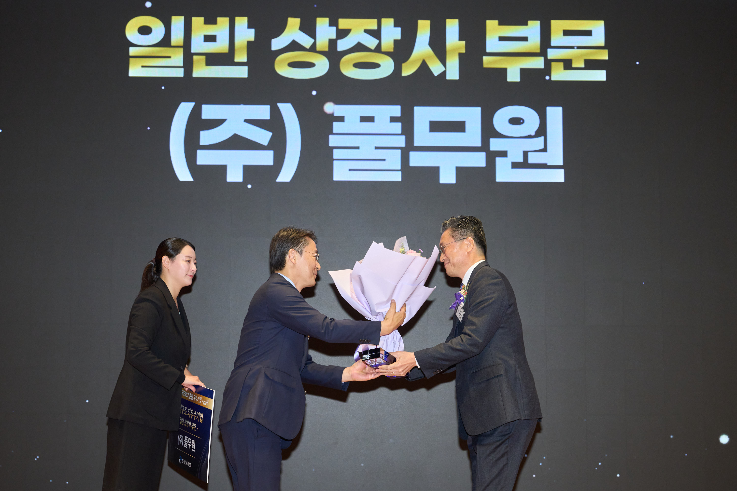 풀무원(대표 이우봉)은 한국ESG기준원(KCGS) 주관으로 서울 여의도 한국거래소에서 열린 ‘2025년 한국ESG기준원 우수기업 시상식’에서 지배구조 부문 최우수 기업에 선정됐다고 5일 밝혔다.