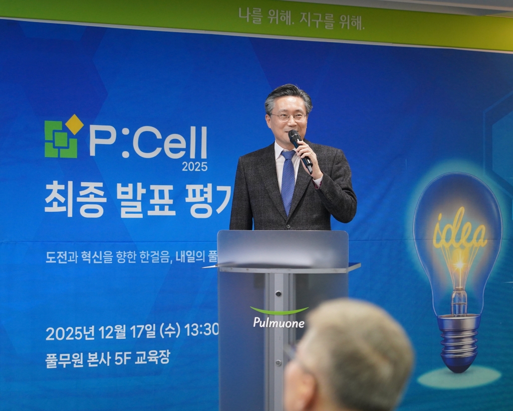 ▲ 17일 서울 강남 수서 본사에서 열린 풀무원 사내 벤처 프로그램 ‘P:Cell 2025 최종 발표평가회’에서 풀무원 김종헌 경영기획실장(사진)이 축사를 전하고 있다.