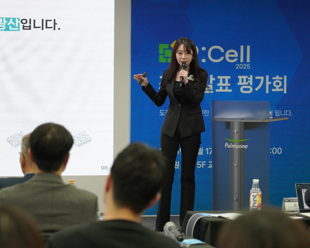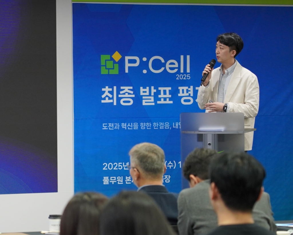 ▲ 17일 서울 강남 수서 본사에서 열린 풀무원 사내 벤처 프로그램 ‘P:Cell 2025 최종 발표평가회’에서 풀무원 조직원이 신규 사업 아이디어를 발표하고 있다.