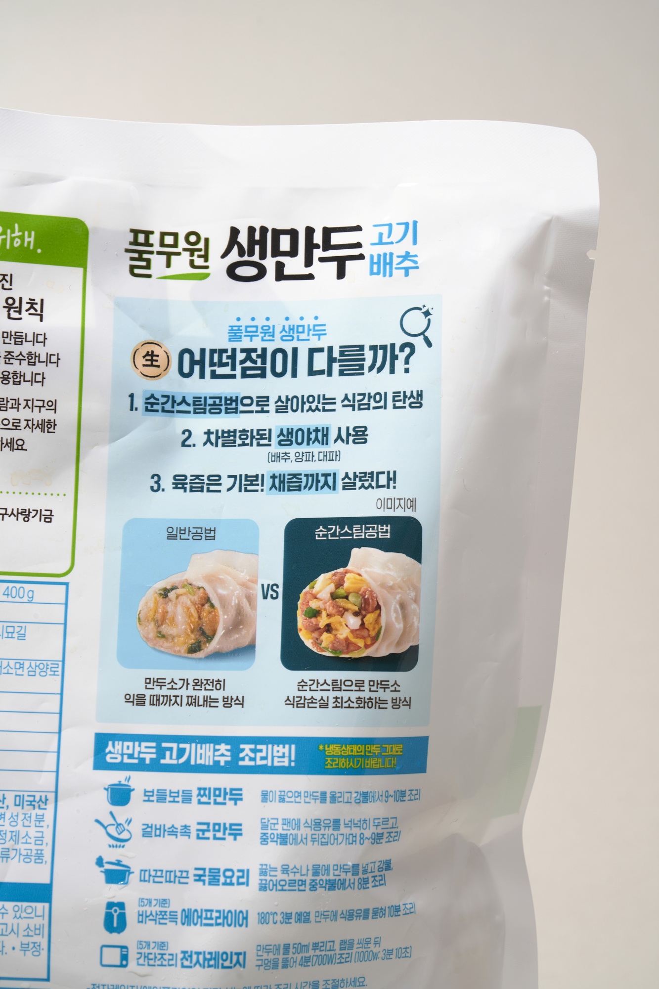 생만두는 이 사이에서 등장한 절충점이자 새로운 업그레이드 만두다. '순간 스팀 공법'을 사용해 만두피는 촉촉하게 유지되게 하는 동시에 만두소의 식감 역시 신선한 상태로 유지되는 두 마리 토끼를 잡았다. 그 덕에 기존 냉동만두에 비해 만두소의 풍미를 더 끌어올릴 수 있다. '채즙'이나 '향', '풍미' 등의 단어로 장점을 강조할 수 있는 비결이다. 생만두는 비슷한 음식 문화를 공유하는 중국 만두시장에서 일반적인 만두이다. 풀무원은 '순간 스팀 공법'이라는 세부적인 컨트롤을 활용해 생만두 제품을 만들었다. 세대가 지날수록 만들기가 어려워지고 결과물이 발전하는 스마트폰이나 아이돌처럼.