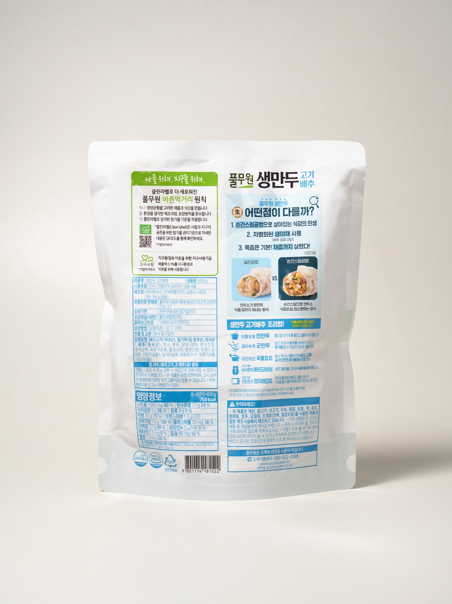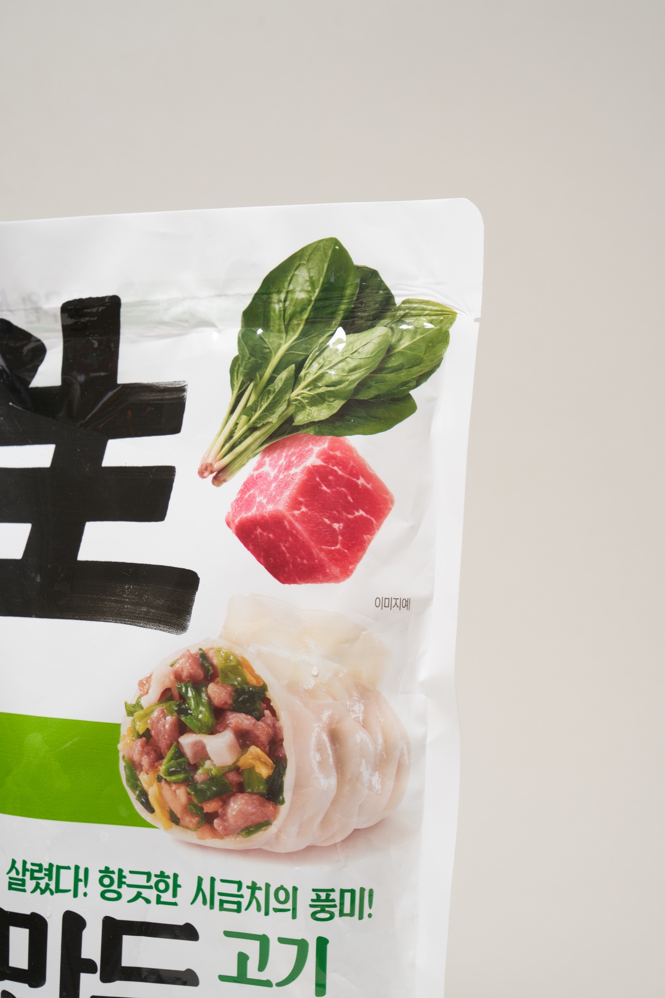 오늘의 주인공 풀무원 생만두는 냉동만두계의 최신형 아이돌이다. 선배 만두들의 장점을 살림과 동시에 개선할 부분을 더욱 발전시켰다. 발전 방향은 풍부한 채즙과 아삭한 식감이다. 풀무원 생만두는 '생'이라는 이름처럼 더 생생한 식감을 구현하는 데 성공한 만두다. 식품의 패키지는 그 식품의 장점을 강조하는 쇼케이스다. 풀무원은 그 생생한 식감을 강조하기 위해 즙과 향이라는 단어를 사용했다. 제품 패키지를 보면 '채즙까지 살렸다', '향', '풍미' 등의 문구를 볼 수 있다. ‘이런 부분이 자신 있다’는 풀무원의 의지다.