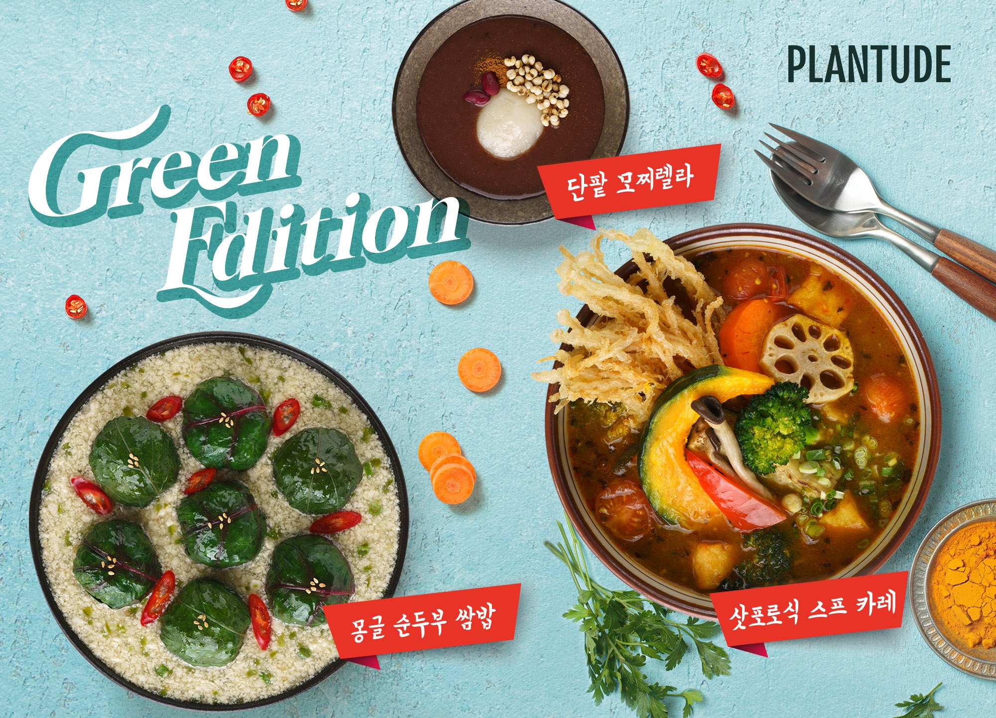 플랜튜드가 이번에 선보인 신메뉴는 ▲몽글 순두부 쌈밥 ▲삿포로식 스프 카레 ▲단팥 모찌렐라 등 총 3종이다. 각 메뉴는 정밀한 영양 설계와 식물성 식재료의 풍미를 살린 조리법으로, 건강과 맛을 모두 고려했다.