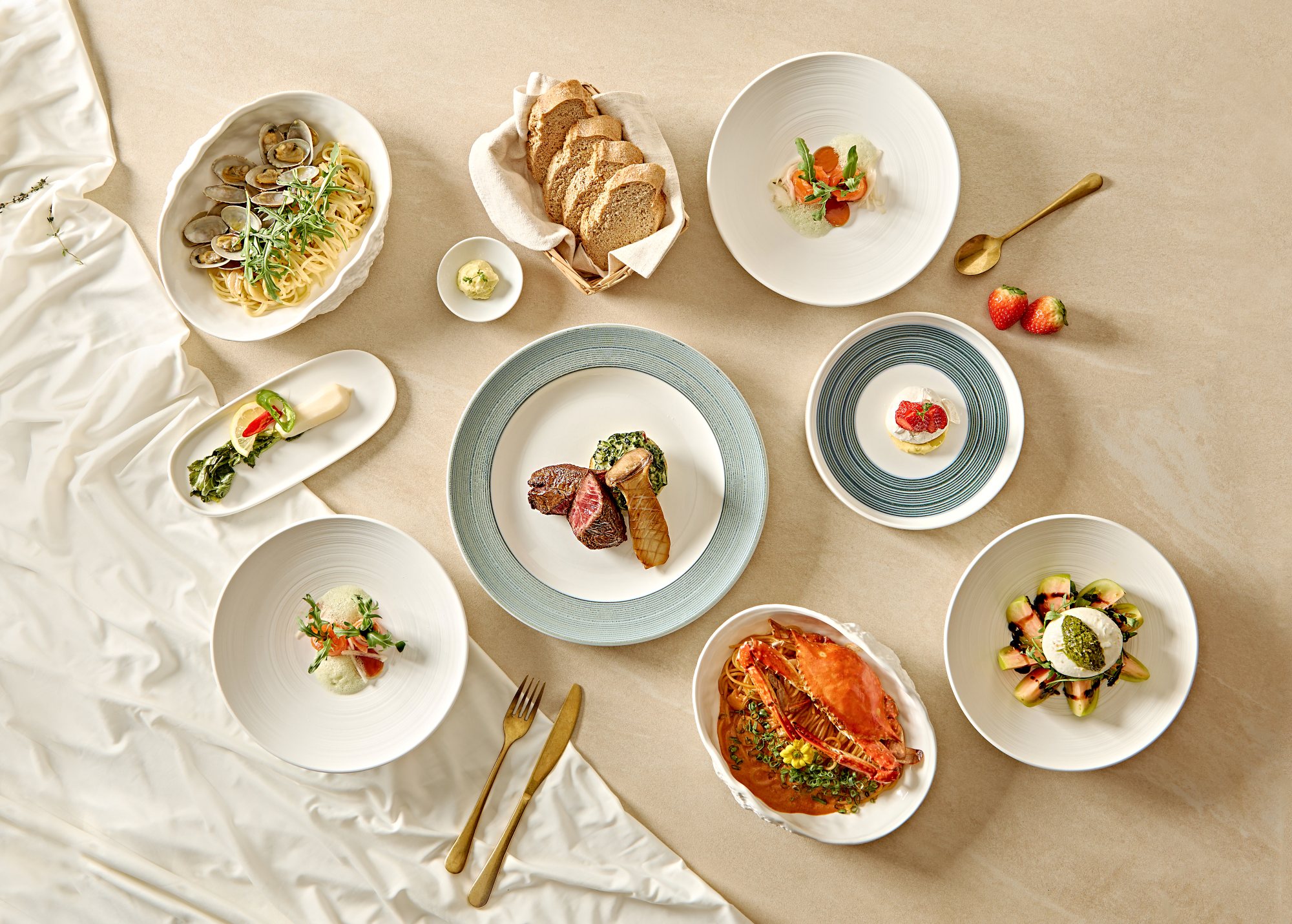 런치타임에는 ‘런치 세트’ 3종을 운영한다. 2인 세트(7만9천원)는 부챗살 스테이크와 이달의 파스타를 중심으로 에피타이저, 식전빵, 디저트로 구성되며, 3인 세트(12만9천원)는 파스타와 샐러드가 추가된다. 4인 세트(17만9천원)는 부챗살 스테이크 2종과 파스타, 샐러드, 수프 등을 포함해 보다 풍성한 구성으로 차별화했다.