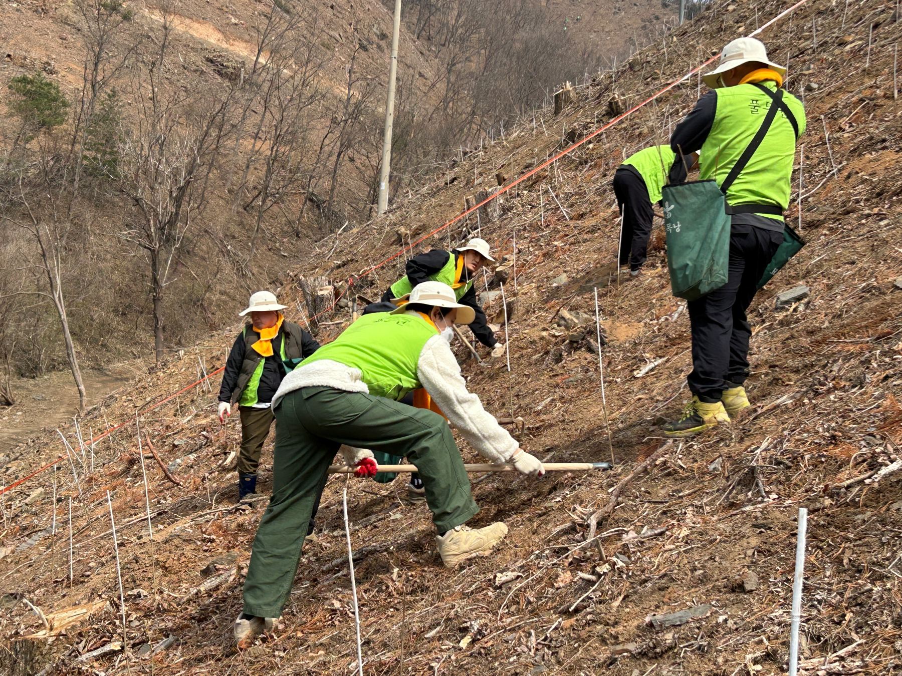 참석자들은 나무심기 방법에 대한 사전 교육을 받은 뒤 쉬나무 4,200본을 식재하며 숲의 가치와 환경 보전의 중요성을 되새기는 시간을 가졌다.