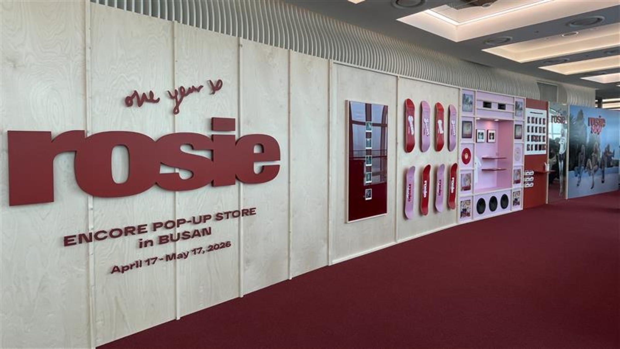 팝업스토어는 단순 전시를 넘어 음악과 공간을 함께 즐길 수 있는 체험형 콘텐츠로 구성했다. 로제의 첫 정규 앨범 ‘rosie’를 감상할 수 있는 리스닝존을 비롯해 포토존, 이벤트존, 굿즈 디스플레이존 등을 마련했으며, 부산에서만 만나볼 수 있는 한정 굿즈 5종도 선보일 예정이다.