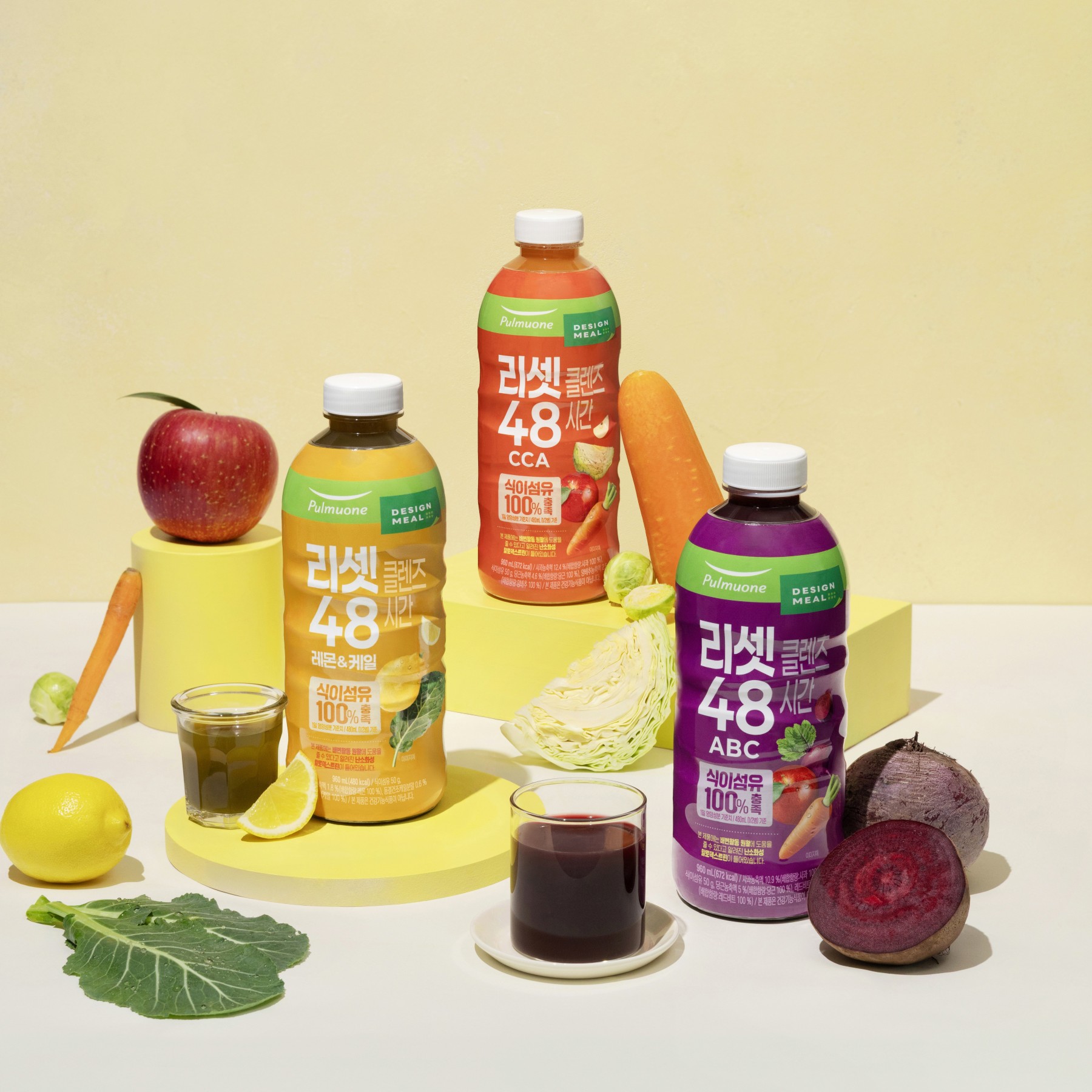 이번 제품은 맛과 원료 조합에 따라 ‘레몬&케일’, ‘ABC(사과·비트·당근)’, ‘CCA(양배추·당근·사과)’ 총 3종으로 구성됐다. 제품 3종 모두 식이섬유를 고루 섭취할 수 있도록 채소와 과일을 균형 있게 배합했으며, 감미료인 D-소비톨액과 수크랄로스 없이 과일에서 유래한 맛을 활용했다.